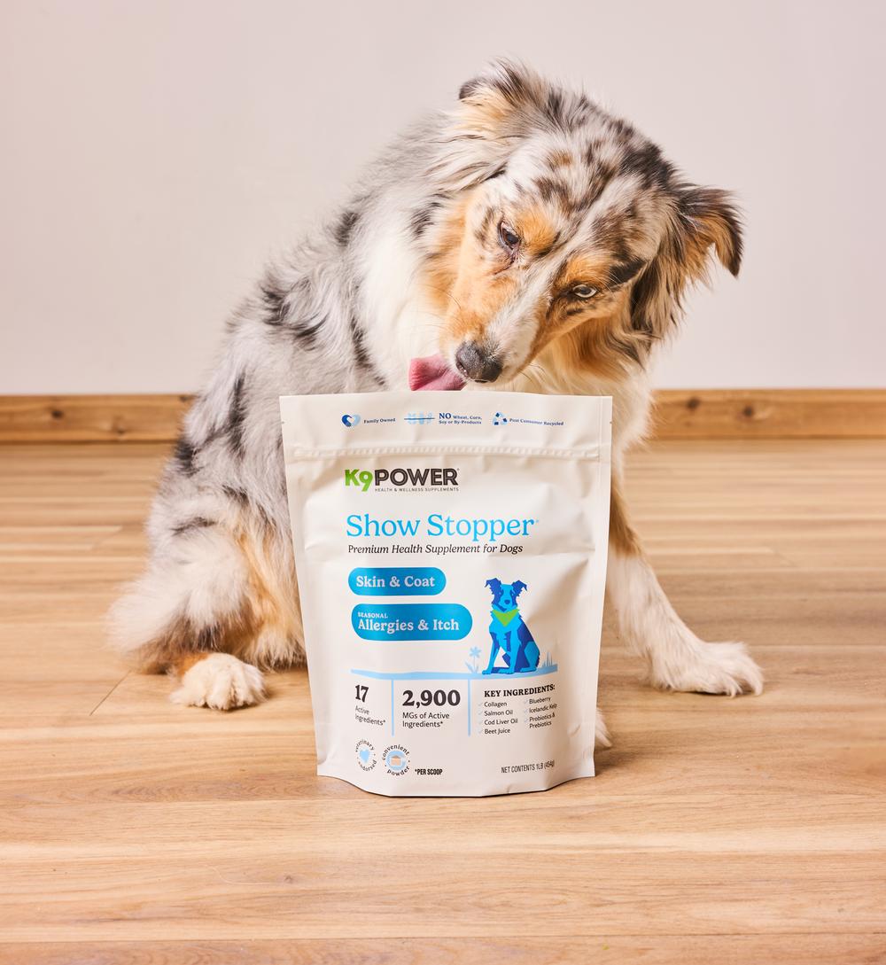 Show Stopper is formulated with an array of proven ingredients not often seen in a coat and skin formula. Dull, dry coats, itchy skin, and excessive shedding are indicators that your pet may be experiencing a wellness challenge that requires key ingredients to promote a lustrous, shiny coat and supple, clear skin. Additionally we include potent antioxidant protection and immune support which are, first and foremost, critical to optimal health of the skin and coat of dogs as well as support for seasonal allergies.